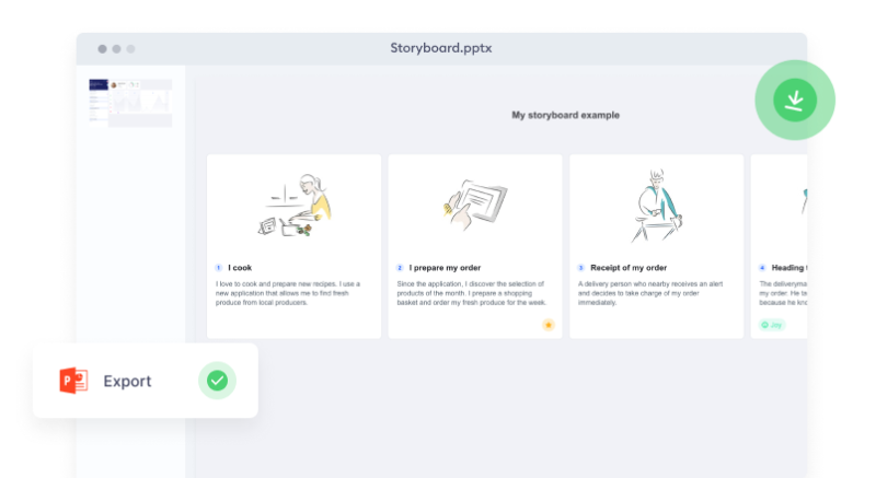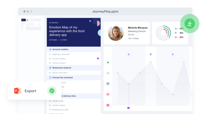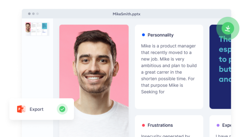Export your work into a high quality Power-Point and keynote to share it with your clients or managers.