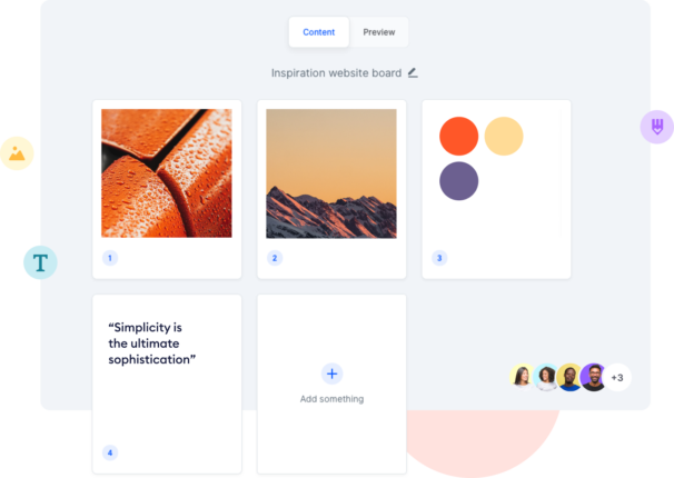 Images, colors, quotes, drawings… Create, upload, and organize your content on the board. Pin what’s matter the most for you.